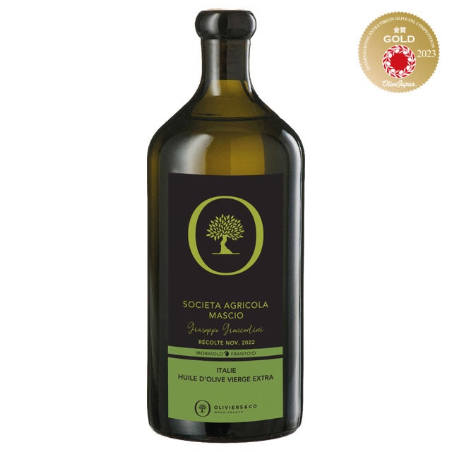 モライオーロ種主体であるこのエキストラバージンオリーブオイルは、刈りたての草や新鮮なハーブの香りが強く、アーティチョークの辛味や苦みを感じられます。