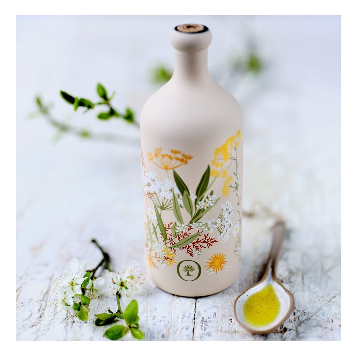 オリーブやオレンジの花、イモーテル、オリーブ果樹園の野生のハーブなどの地中海の花をイメージしたデザインボトルでお届けする今年のサマーボトルは、100% アルボサーナ単一品種のオイルで、アーモンドと白い花の繊細な香りによって強調された滑らかさと素晴らしい甘さが特徴です。
