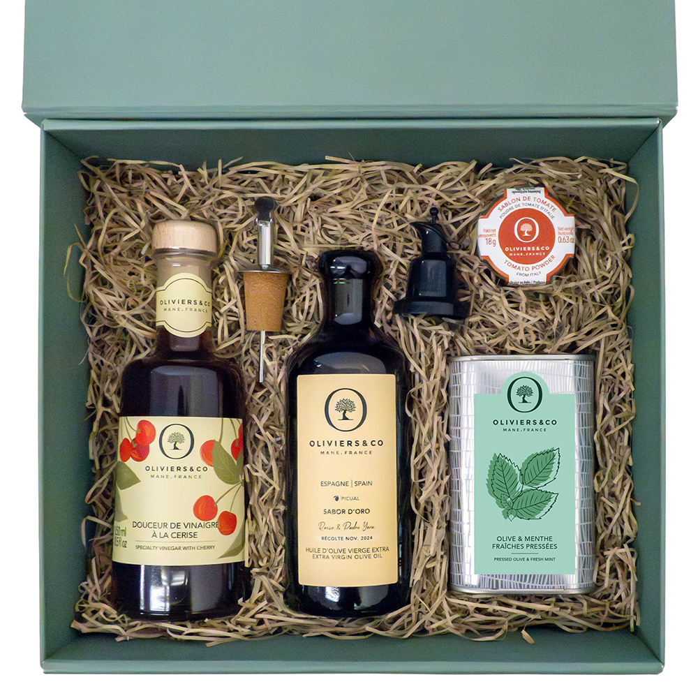 そんなかけがえのない夏の日常を彩る限定セットは、スペイン産のエキストラバージンオリーブオイルや甘酸っぱいチェリービネガー、清涼感のあるミントオリーブオイルなどをメインにご用意しました。ご自宅用にはもちろん、夏の贈り物として最適です。