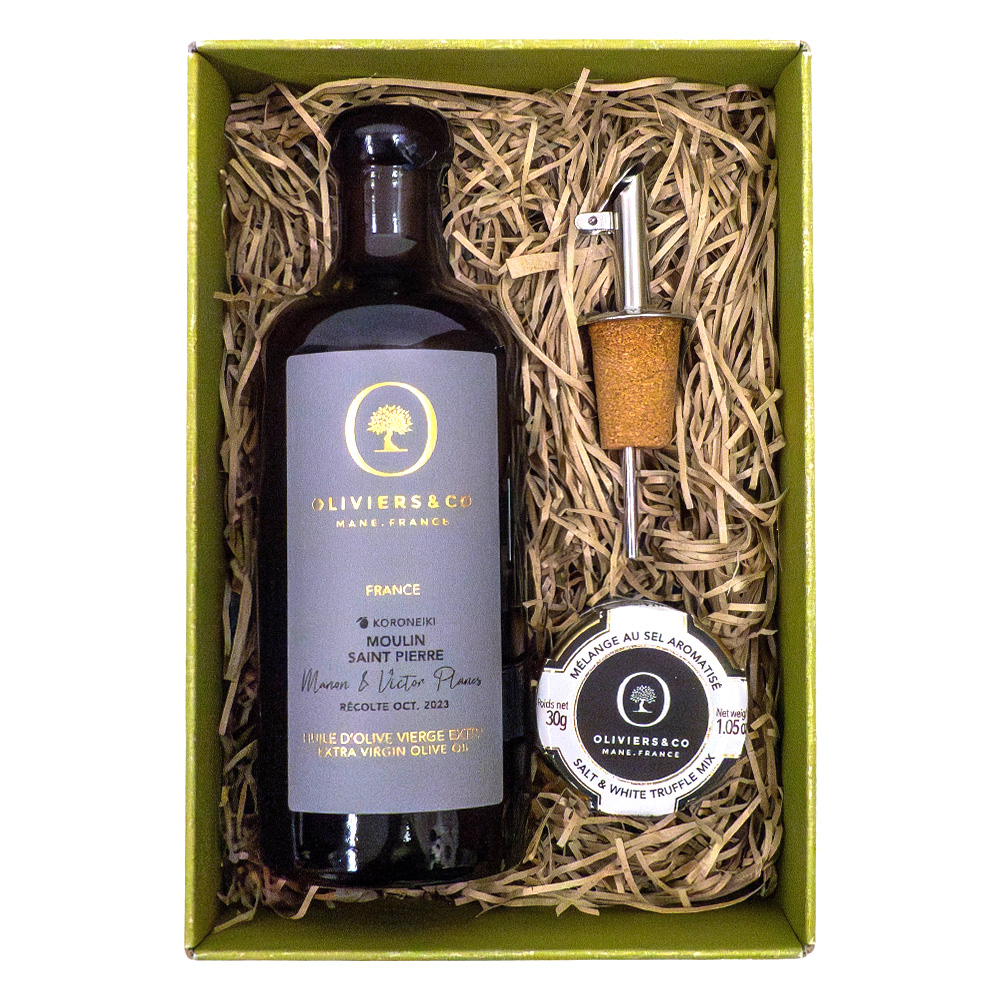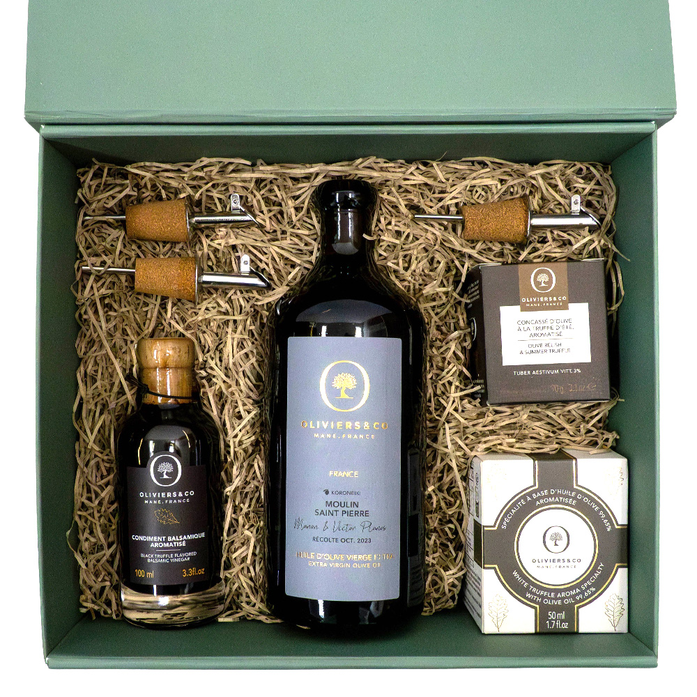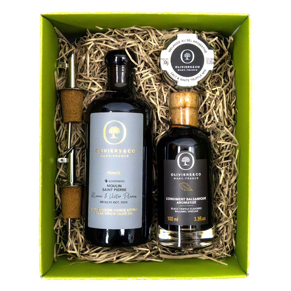 南仏の陽光を浴びて育った希少なオリーブから搾油されたフランス産エキストラバージンオリーブオイルをメインに、芳醇な香りが広がるトリュフ風味のバルサミコビネガーやトリュフ商品を、贅沢にセットにいたしました。