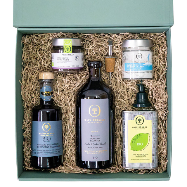 地中海の恵みを凝縮したBIOタプナードや、果実の自然な酸味が魅力のBIOバルサミコビネガーなど、料理を彩る定番アイテムを組み合わせました。